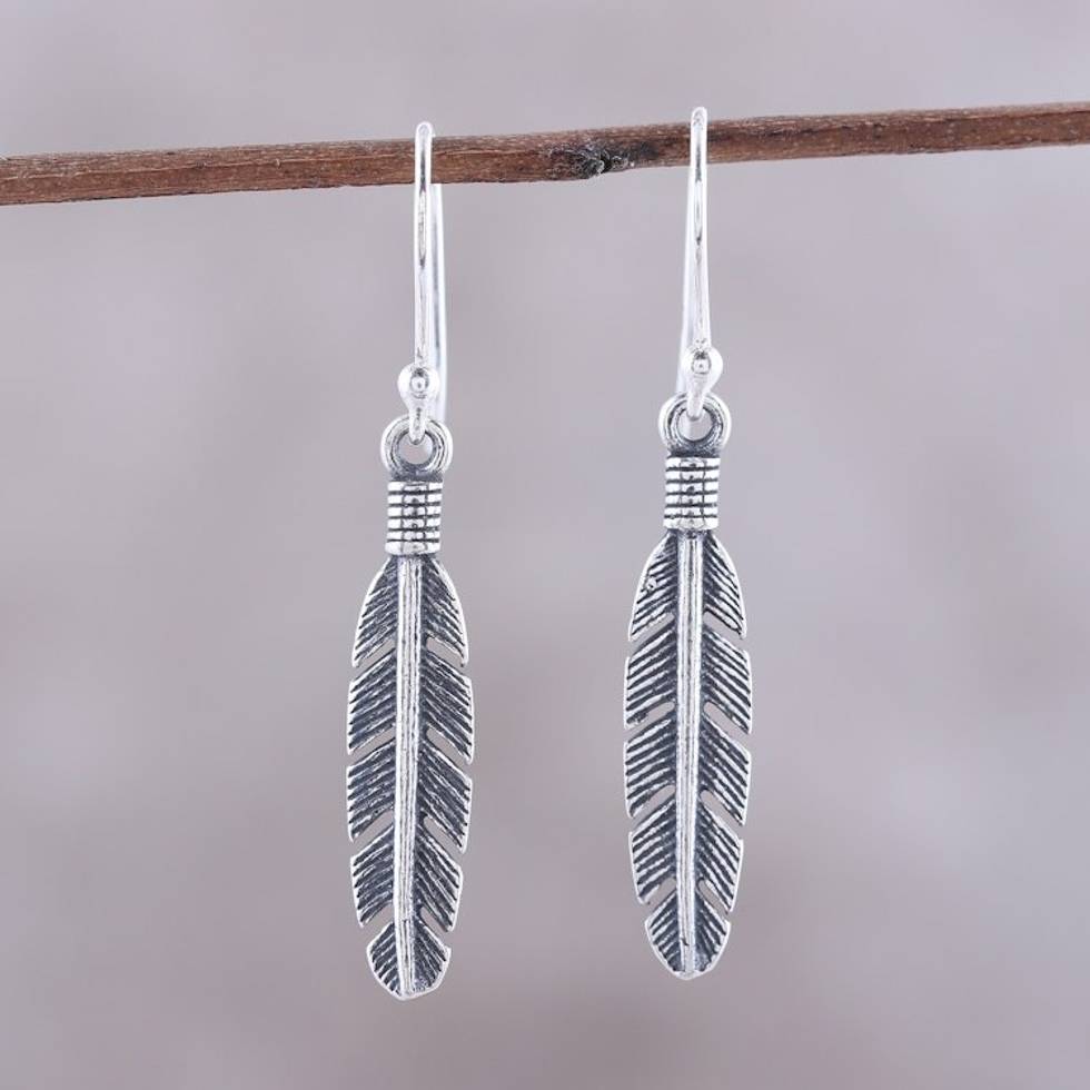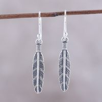 Sterling Silver Feather Dangle Earrings from India 'Light Touch' Item ID: 2669944142
