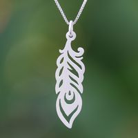 Sterling Silver Feather Pendant Necklace from Thailand 'Glamorous Feather' Item ID: 2671798791