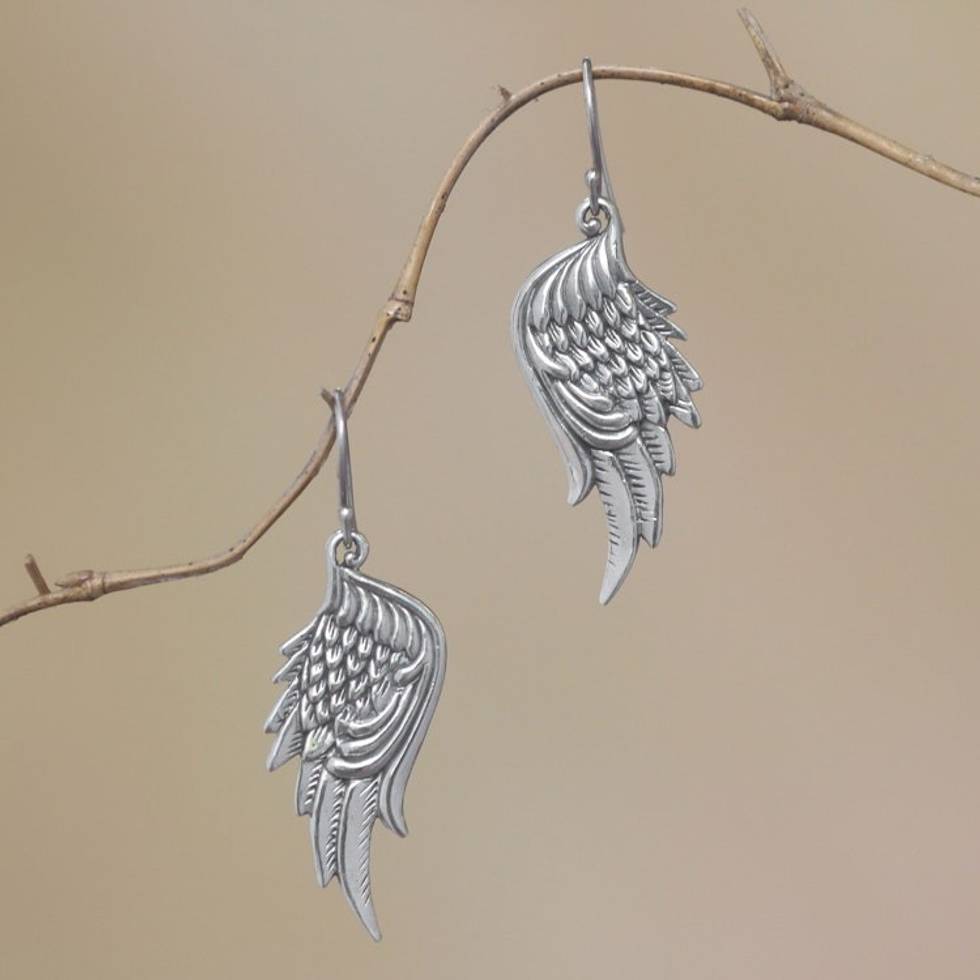 Sterling Silver Feathered Wings Dangle Earrings 'Liberty Wings' Item ID: 2671736592