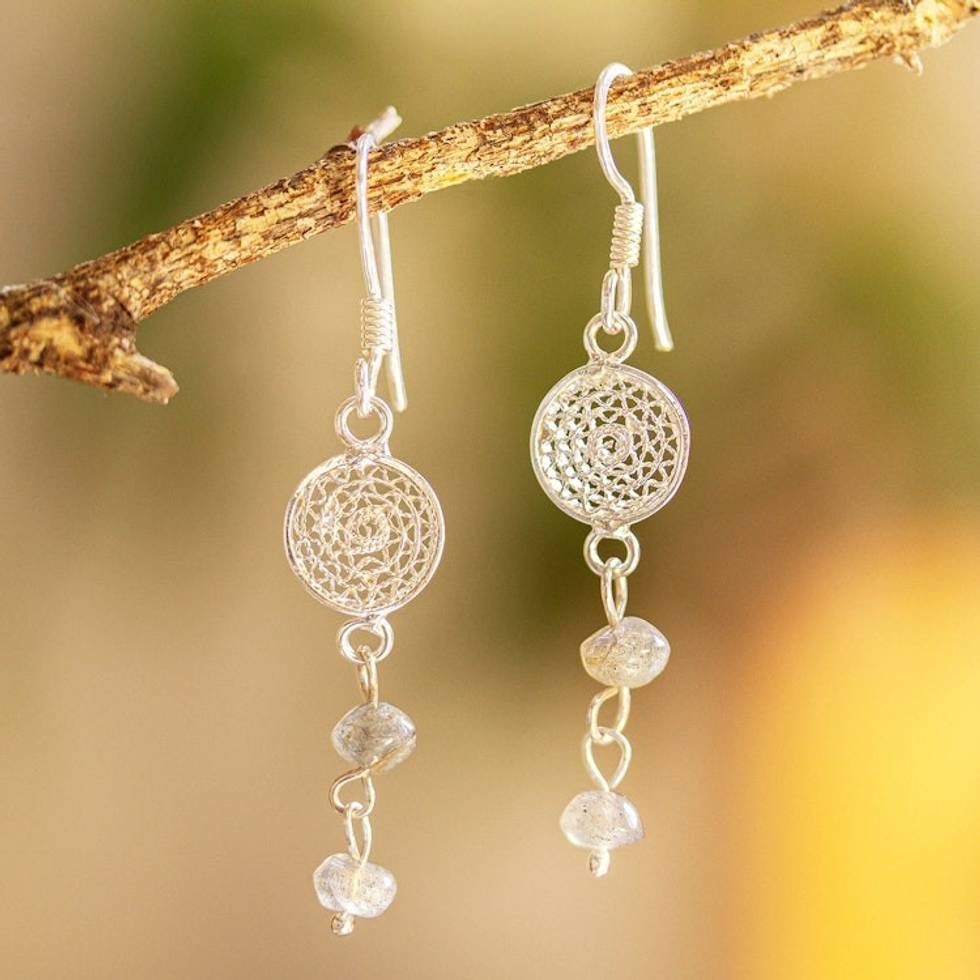 Sterling Silver Filigree and Labradorite Dangle Earrings 'Solar Circle' Item ID: 2671808006