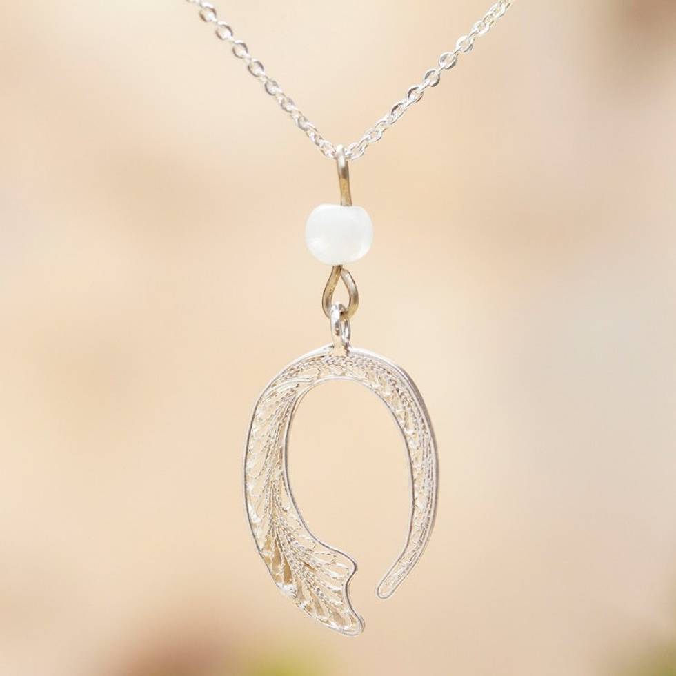 Sterling Silver Filigree and Moonstone Pendant Necklace 'Lunar Movement' Item ID: 2671808386