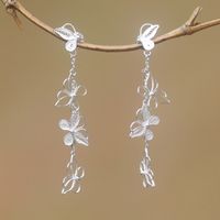 "Handcrafted of intricate sterling silver filigree, an array of elegant butterfly pendants are linked together in this pair of dangle earrings from Java. Selly Sagita creates the earrings, crafting them with love."