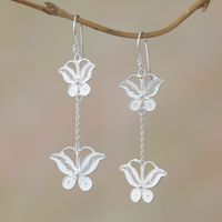 Sterling Silver Filigree Butterfly Elongated Dangle Earrings 'Filigree Butterflies' Item ID: 2671736491