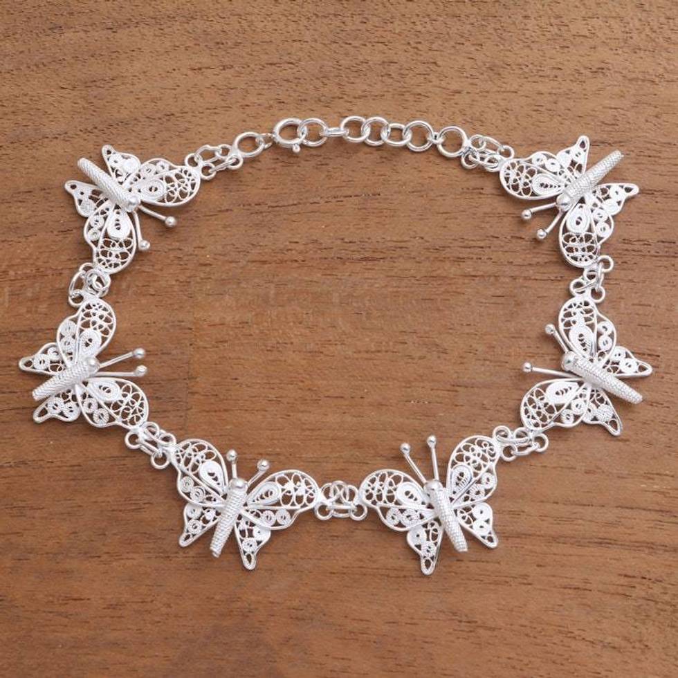 Sterling Silver Filigree Butterfly Link Bracelet from Java 'Glittering Butterflies' Item ID: 2676657395