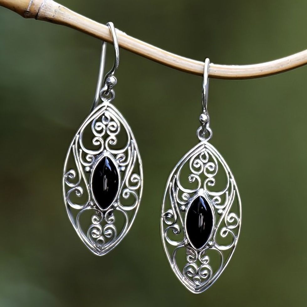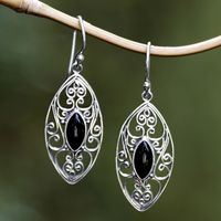 Sterling Silver Filigree Dangle Earrings with Onyx Jewels 'Guard Eyes' Item ID: 2671763134