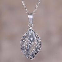 Sterling Silver Filigree Leaf Pendant Necklace from Peru 'Spiraling Veins' Item ID: 2671400288