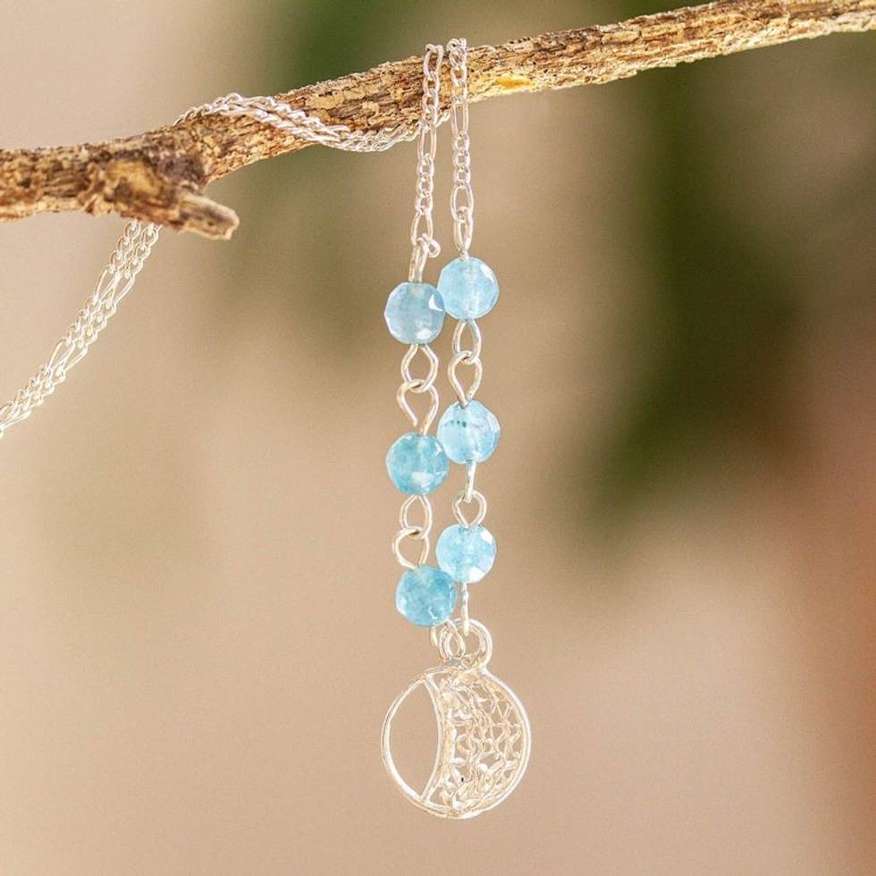 Sterling Silver Filigree Pendant Necklace with Quartz Beads 'Phases of the Moon' Item ID: 2671808287