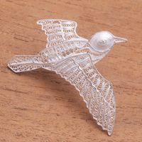 "Crafted by hand, intricate ribbons of sterling silver filigree are used to create this image of a soaring pigeon with wings outstretched. Javanese artisan Selly Sagita creates this artisanal and beautiful brooch."