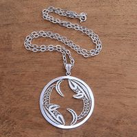 "Handcrafted of sterling silver filigree, the symbol for the zodiac sign Pisces, a pair of fish, is realized within the circular pendant of this necklace. Javanese artisan Selly Sagita designs this necklace for the Pisces in your life, circling the neck on sterling cable chain."
