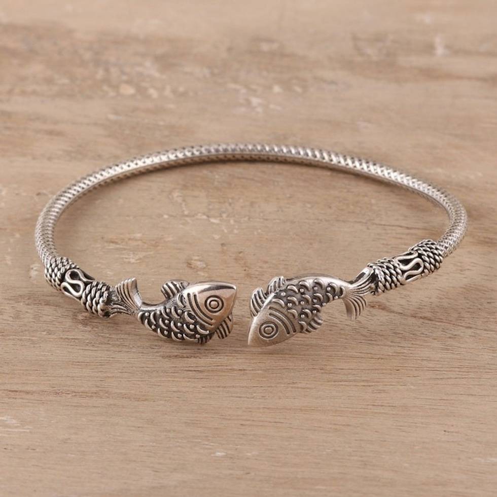 Sterling Silver Fish Cuff Bracelet from India 'Fish Story' Item ID: 2671792527