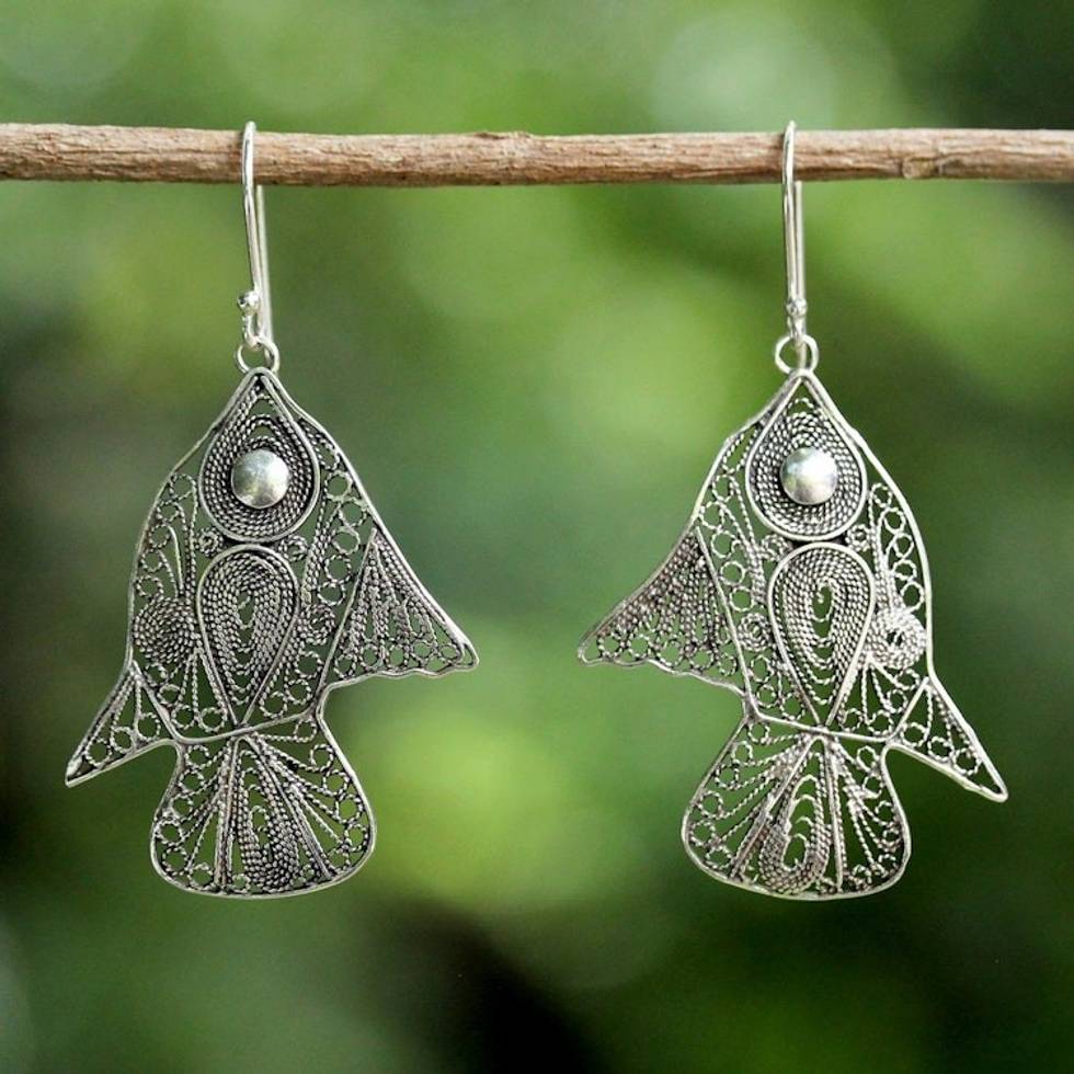 Sterling Silver Fish Filigree Dangle Earrings From Thailand 'Fish Filigree' Item ID: 2671801600