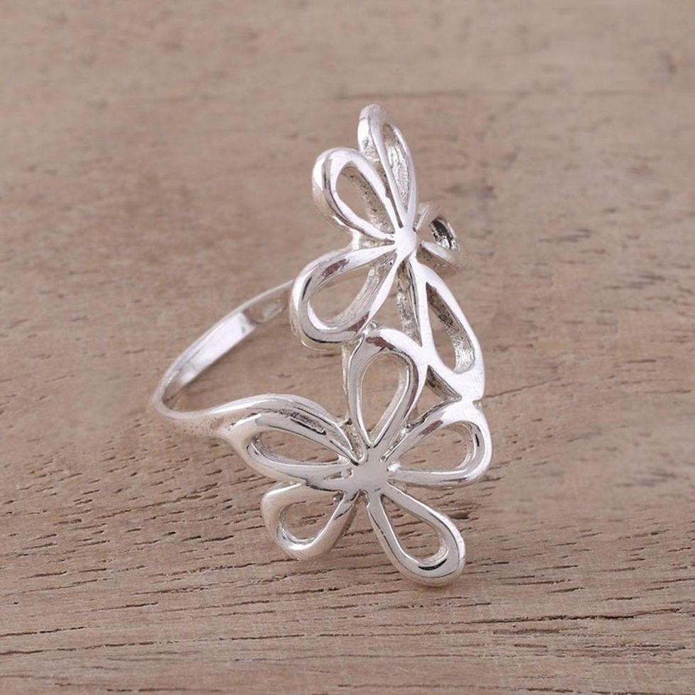Sterling Silver Floral Cocktail Ring from India 'Twin Floral Beauty' Item ID: 2671667420