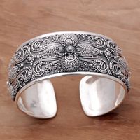 Sterling Silver Floral Cuff Bracelet Hand Crafted in Bali 'Temple Blooms' Item ID: 2671821815