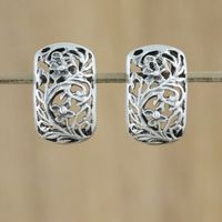 Sterling Silver Floral Drop Earrings from Thailand 'Floral World' Item ID: 2669927982