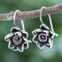 Sterling Silver Floral Drop Earrings from Thailand 'Flowers in the Attic' Item ID: 2671799937