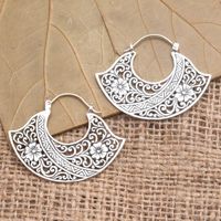 Sterling Silver Floral Hoop Earrings from Bali 'Cape of Flowers' Item ID: 2671737714