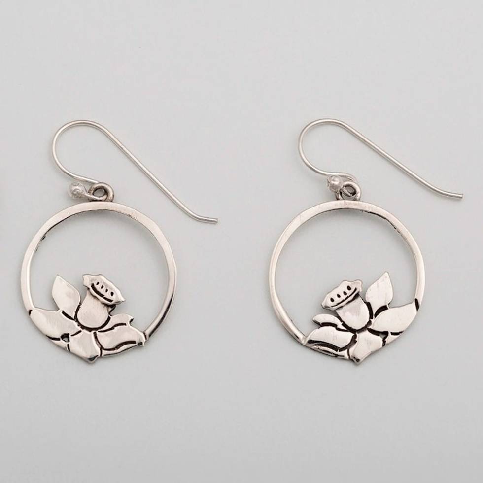 Sterling Silver Flower Dangle Earrings from Mexico 'Floral Delight' Item ID: 2671796507