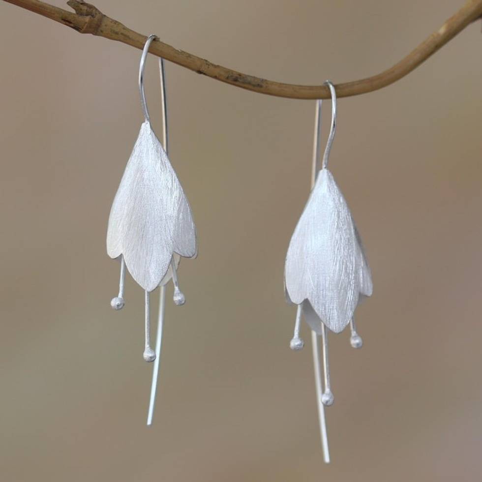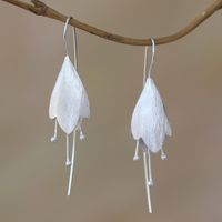 Sterling Silver Flower Drop Earrings from Bali 'Budding Orchid' Item ID: 2669922369