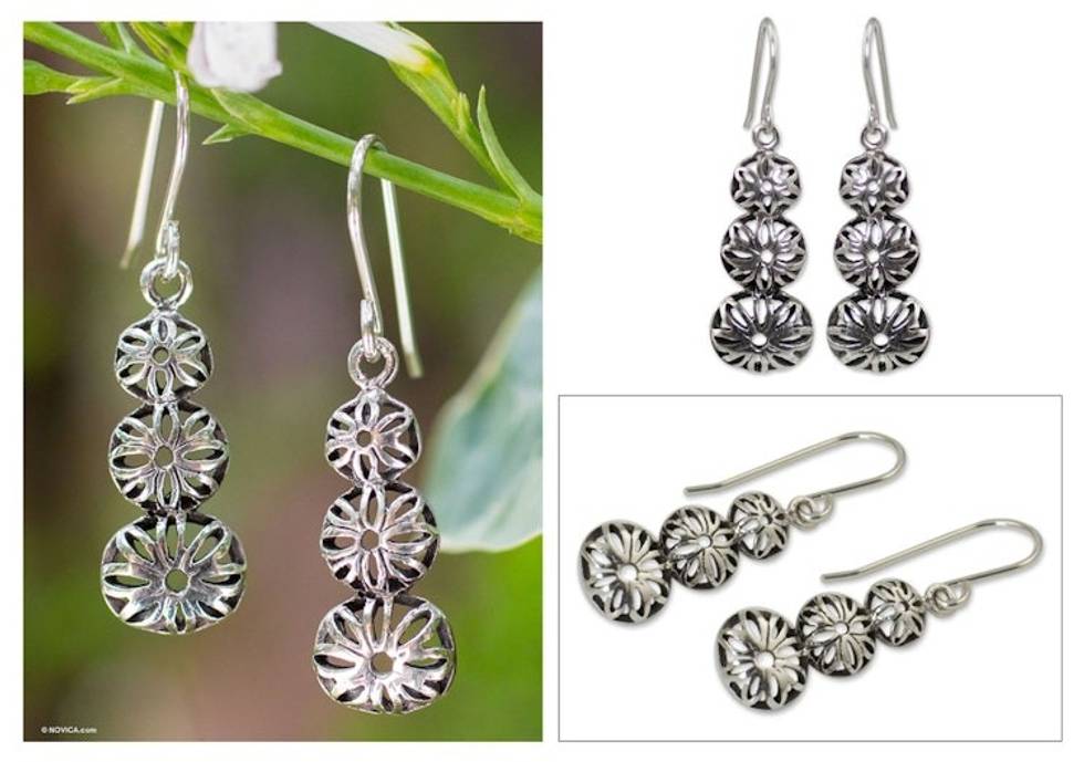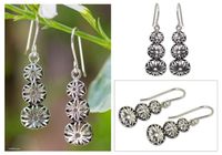 Sterling silver flower earrings 'Flower Tower' Item ID: 2671802835