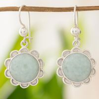 Sterling Silver Flower Earrings with Light Green Jade 'Solar Apple Flower' Item ID: 2671779251