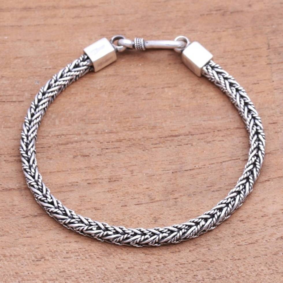 Sterling Silver Foxtail Chain Bracelet from Bali 'Foxtail Rope' Item ID: 2671744768