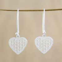 Sterling Silver Fractal Heart Dangle Earrings from Thailand 'Fractal Heart' Item ID: 2671800664