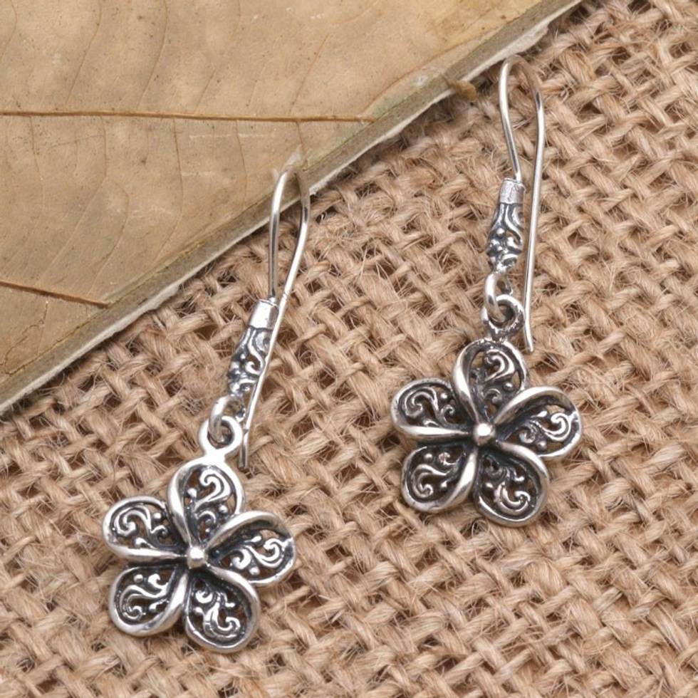 Sterling Silver Frangipani Dangle Earrings 'Twirling Frangipani' Item ID: 2669923321