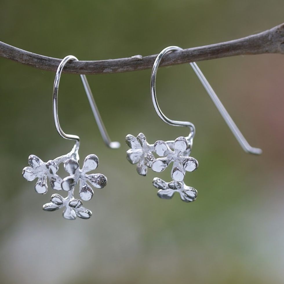 Sterling Silver Frangipani Drop Earrings Crafted in Bali 'Frangipani Kisses' Item ID: 2671762970