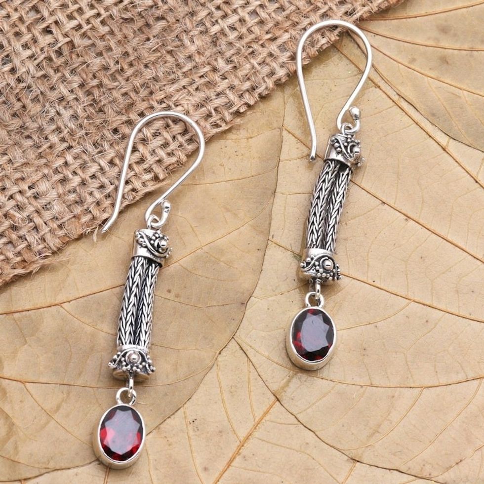 Sterling Silver Garnet Dangle Earrings 'Bali Birthright' Item ID: 2671698906