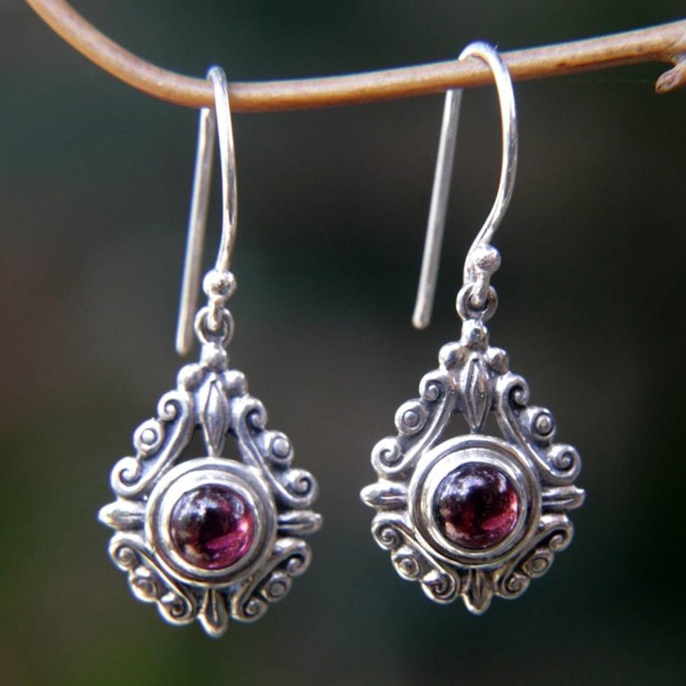Sterling Silver Garnet Dangle Earrings 'Heart of Peace' Item ID: 2671698385