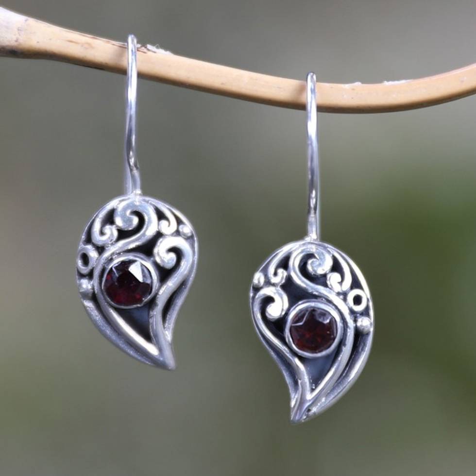 Sterling Silver Garnet Drop Earrings 'Dancing Dewdrops' Item ID: 2671700641