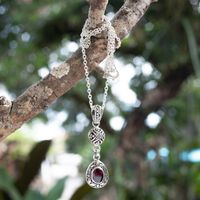 Sterling Silver Garnet Pendant Necklace with Leaf Motifs 'Red Summer' Item ID: 2671764791