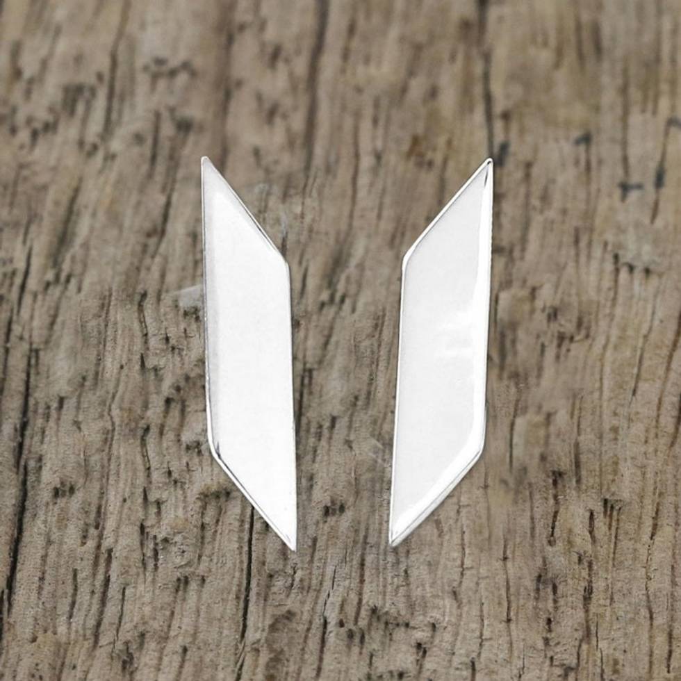 Sterling Silver Geometric Drop Earrings from Thailand 'Parallelogram Shimmer' Item ID: 2671640816