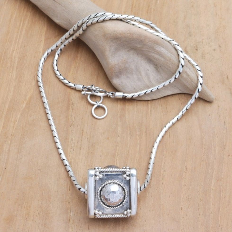 Sterling Silver Geometric Pendant Necklace from Java 'Triangular Fortune' Item ID: 2671763239