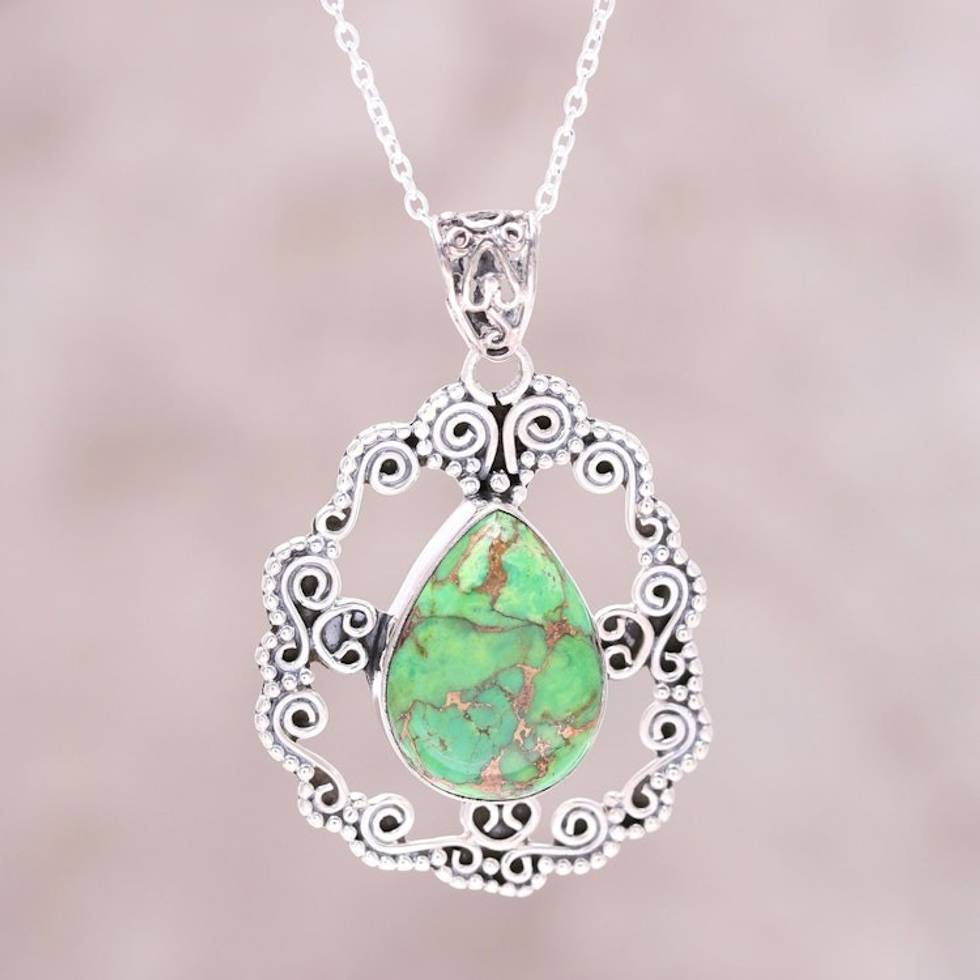 Sterling Silver Green Composite Turquoise Pendant Necklace 'Blissful Green' Item ID: 2671792872