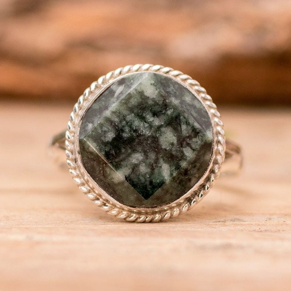 Sterling Silver Green Jade Cocktail Ring 'Square Circle' Item ID: 2671780231