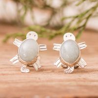Sterling Silver Green Jade Earrings with Sea Turtle Motif 'Light Green Marine Turtles' Item ID: 2676659410