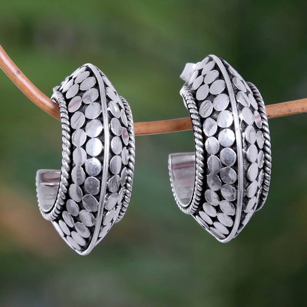Sterling Silver Half Hoop Earrings from Indonesia 'Snakeskin Hoops' Item ID: 2671698300