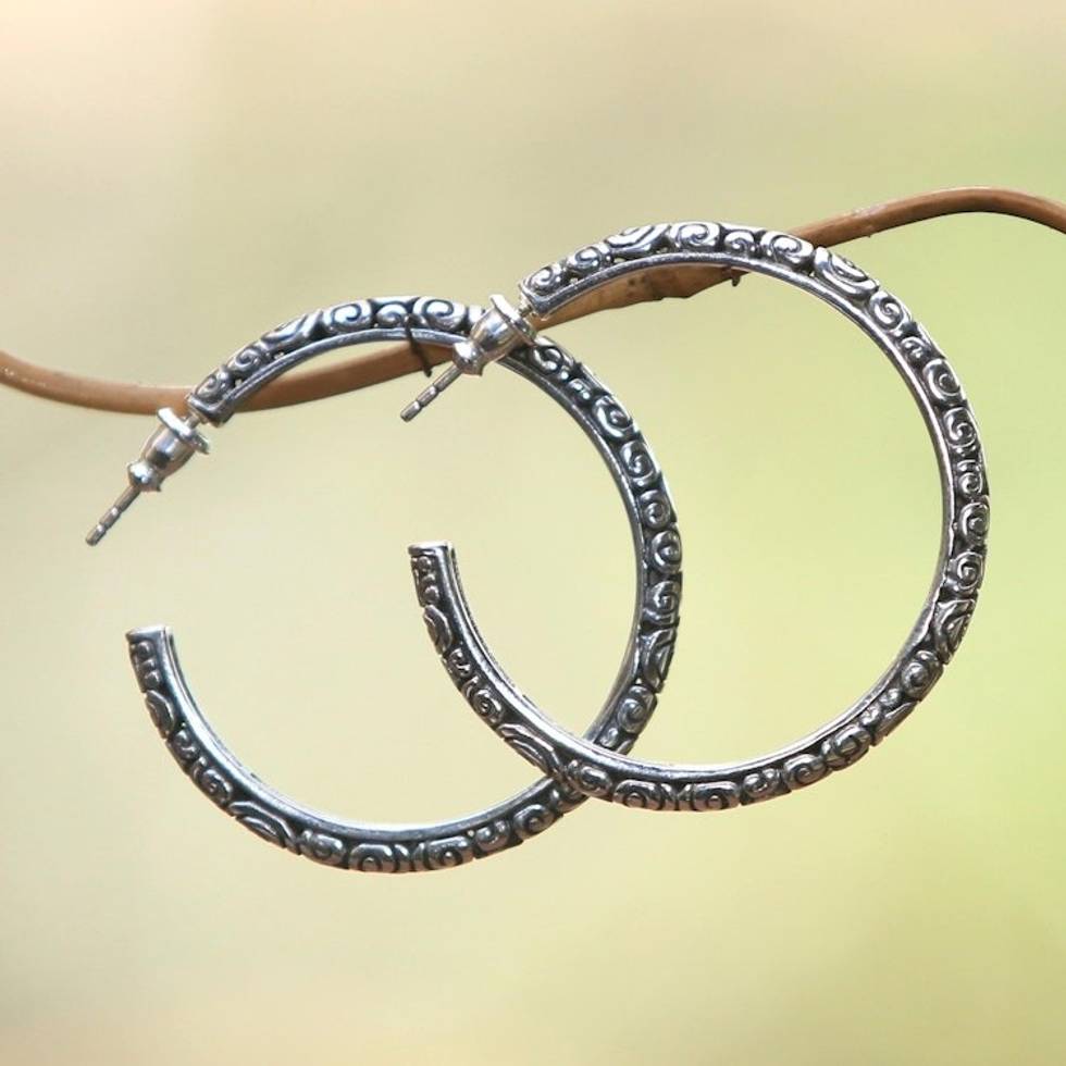Sterling Silver Half Hoop Earrings Large 'Cloud Hoop' Item ID: 2671479154