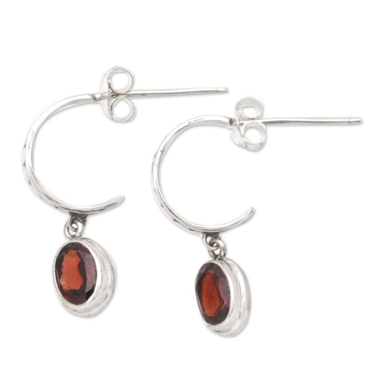 Sterling Silver Half-Hoop Earrings with Faceted Garnet Gems 'Crimson Cuddle' Item ID: 2671763246