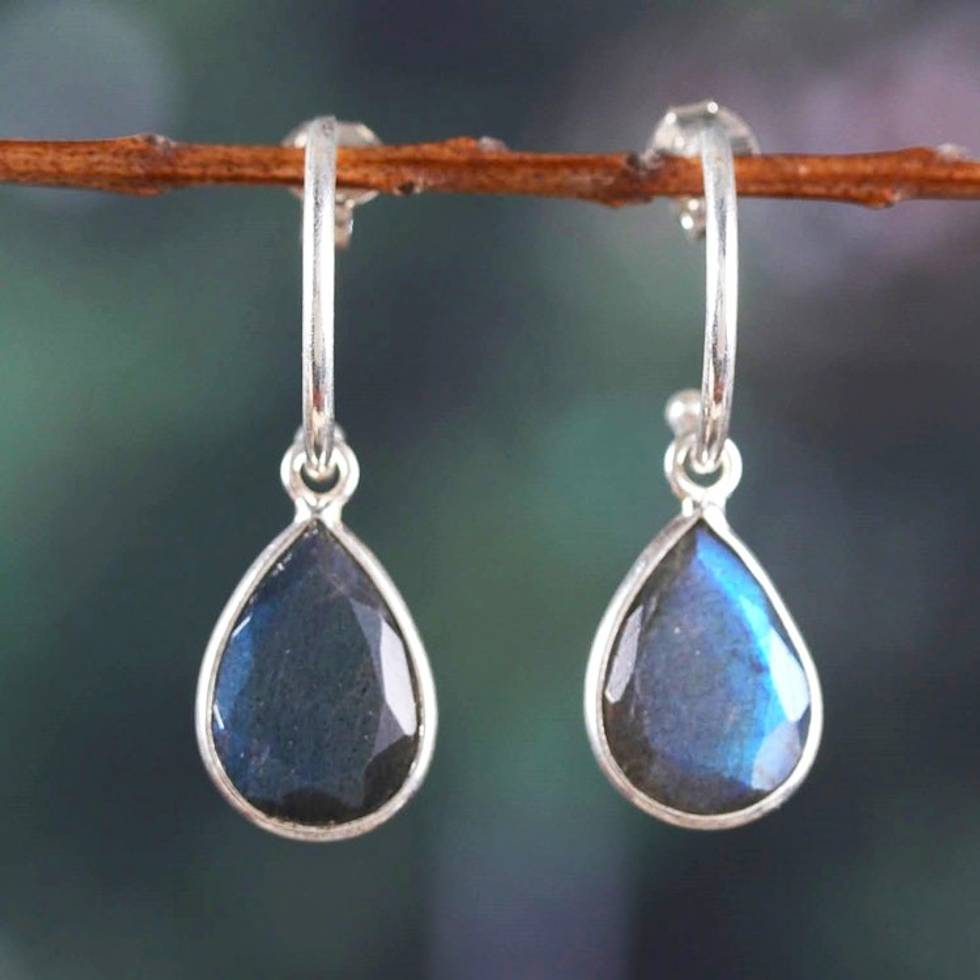 Sterling Silver Half-Hoop Earrings with Labradorite Gemstone 'Fabulous Guardian' Item ID: 2671786586