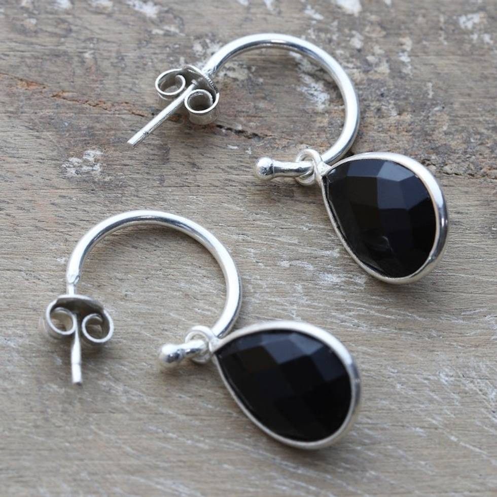 Sterling Silver Half-Hoop Earrings with Onyx Gemstone 'Fabulous Black' Item ID: 2671787056
