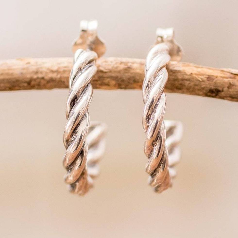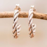 Sterling Silver Half-Hoop Earrings with Torsade Rope Design 'Radiant Ropes' Item ID: 2676659598