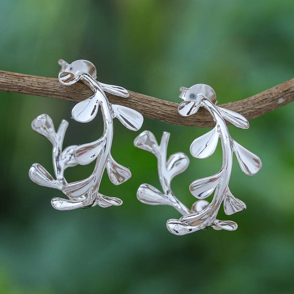 Sterling Silver Half-Hoop Olive Earrings Crafted in Thailand 'Silver Olives' Item ID: 2671797315