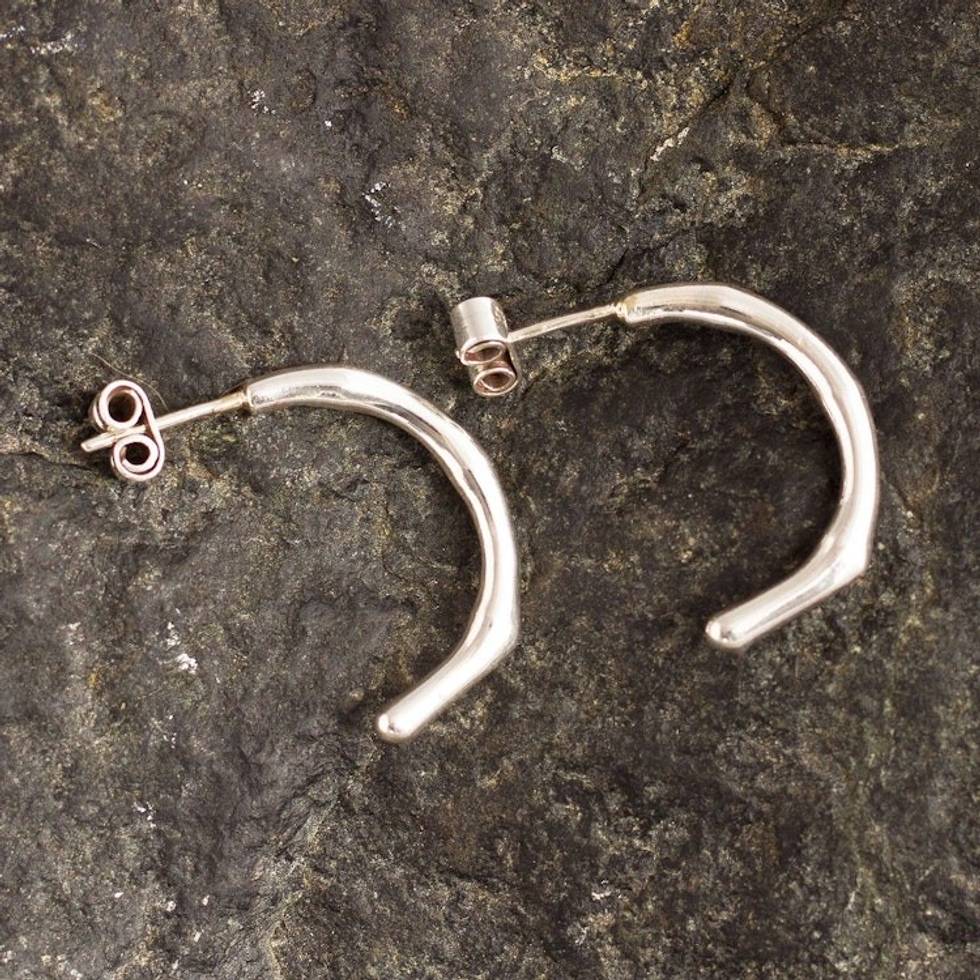 Sterling Silver Half Hoop Post Earrings from Peru 'Minimus' Item ID: 2671689614
