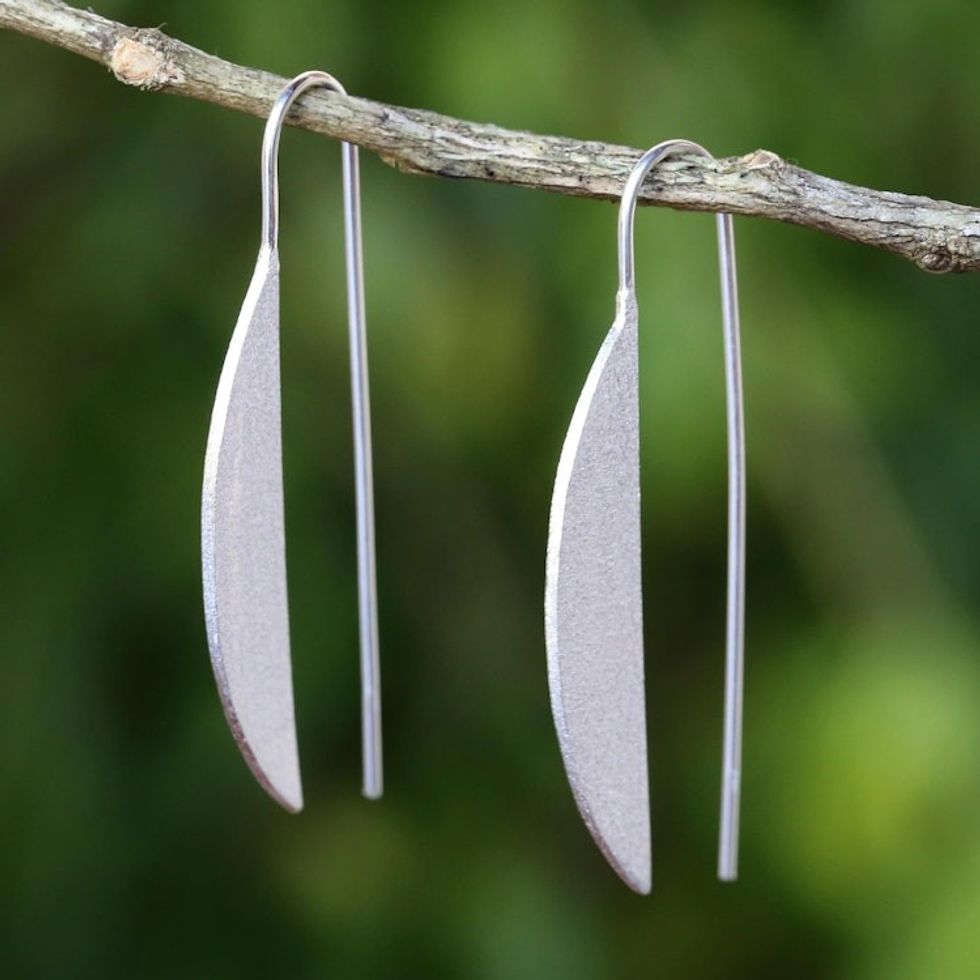 Sterling Silver Half-Moon Drop Earrings from Thailand 'Glittering Half-Moons' Item ID: 2671801339