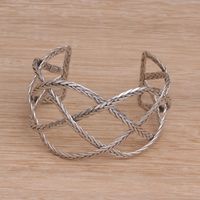 Sterling Silver Handcrafted Cuff Bracelet with Braided Motif 'Woven Road' Item ID: 2671734455