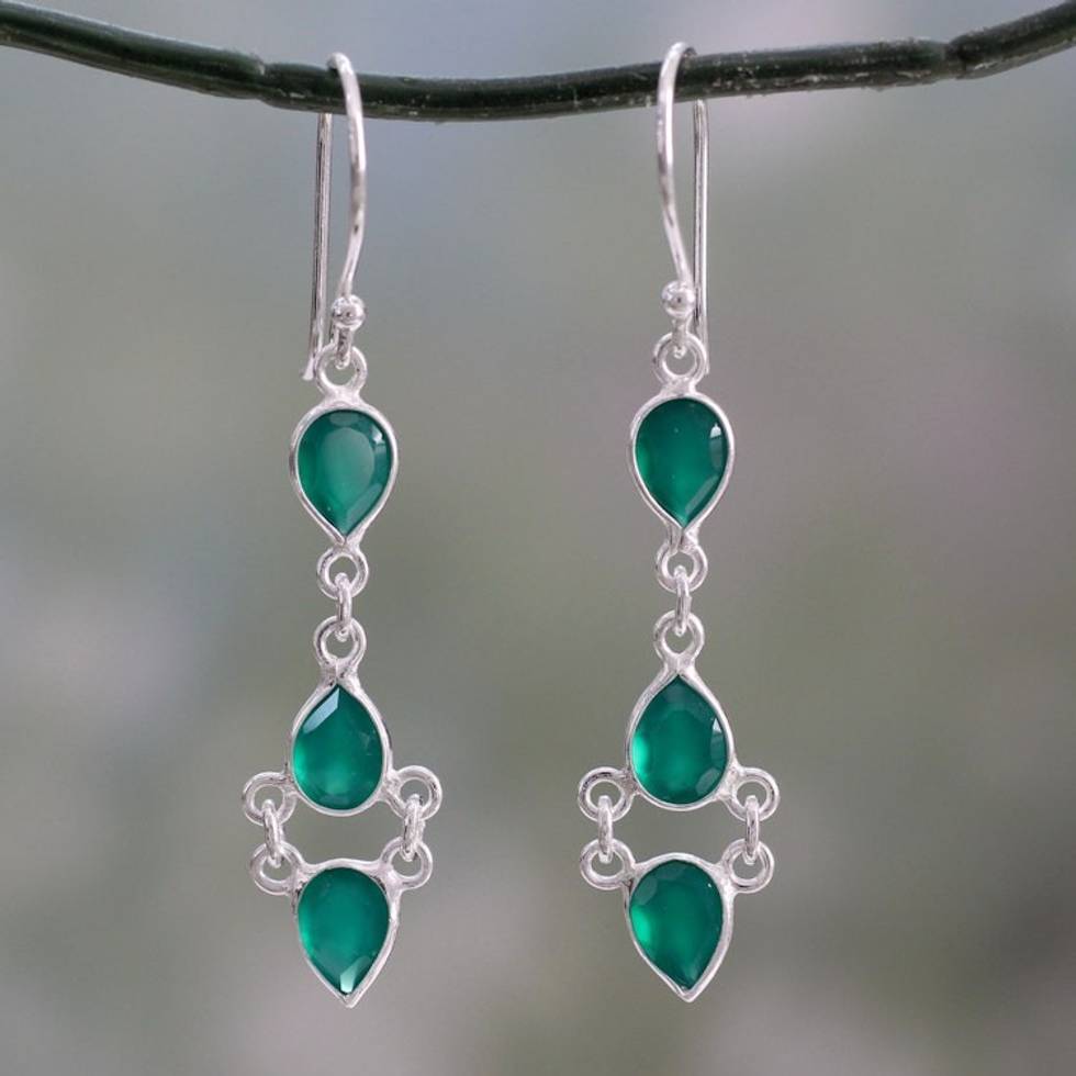 Sterling Silver Handcrafted Earrings with Faceted Green Onyx 'Mystic Wonder' Item ID: 2671793736