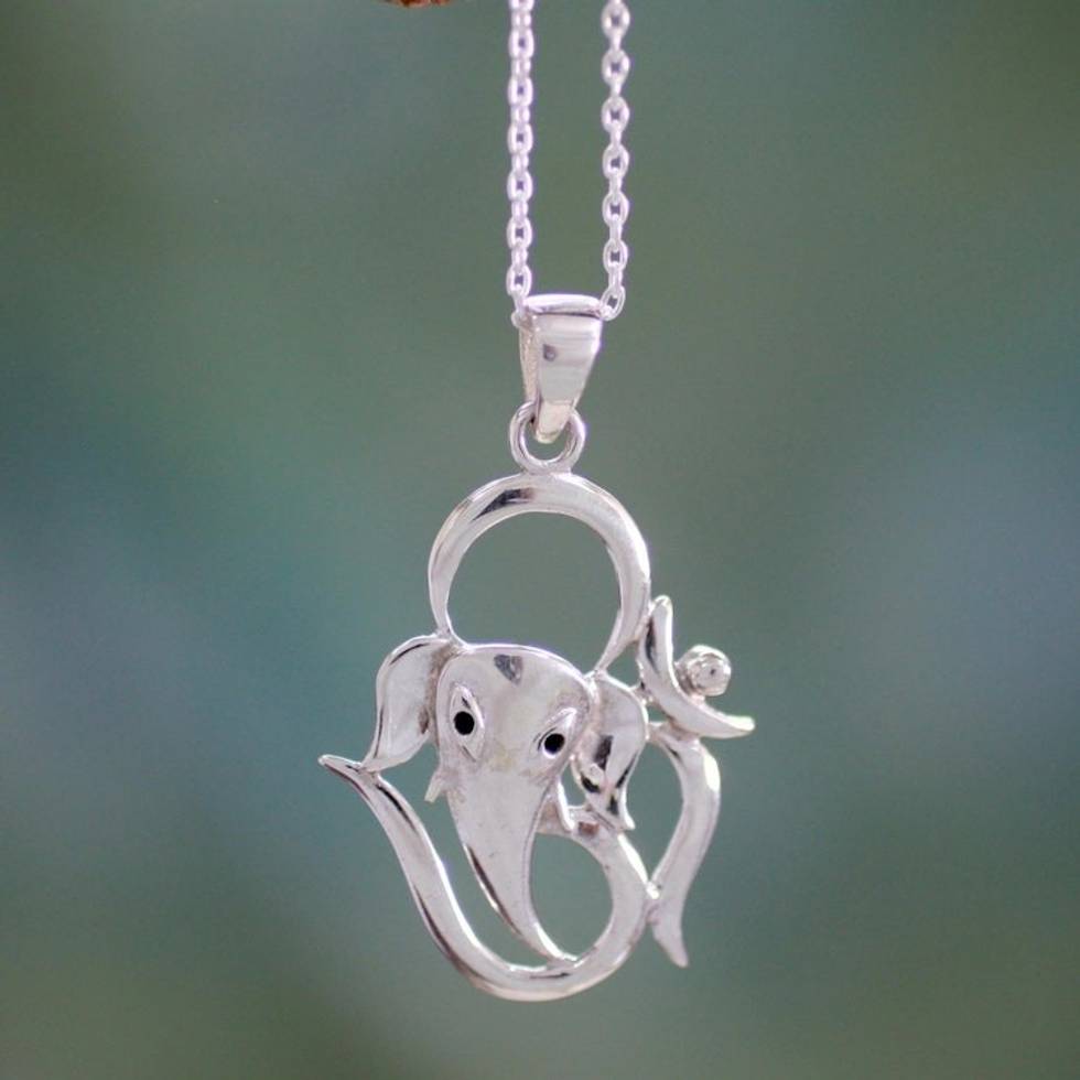 Sterling Silver Handmade Ganesha Necklace 'Modern Ganesha' Item ID: 2671793481