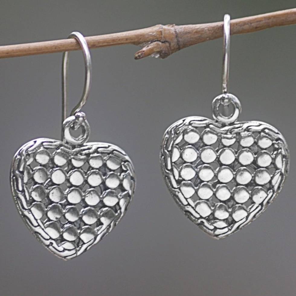 Sterling Silver Heart Dangle Earrings Handmade in Indonesia 'Heart of Steel' Item ID: 2671701459